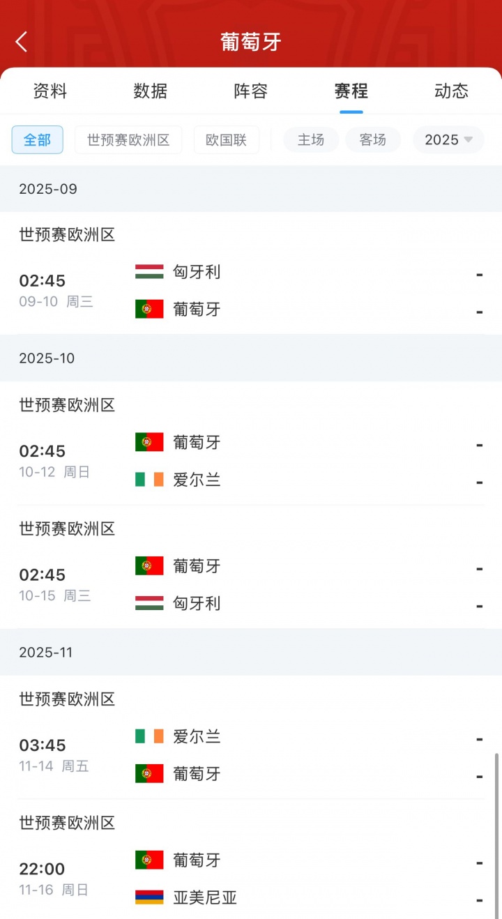 在欧洲预选赛中,F组还剩5场比赛,同一组的葡萄牙对手包括匈牙利,爱尔兰和亚美尼亚。